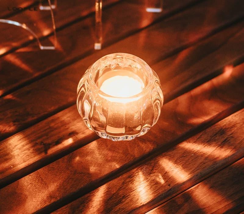 屋内用よりも大きな炎で、クリアカップがあかりを遮りません。
