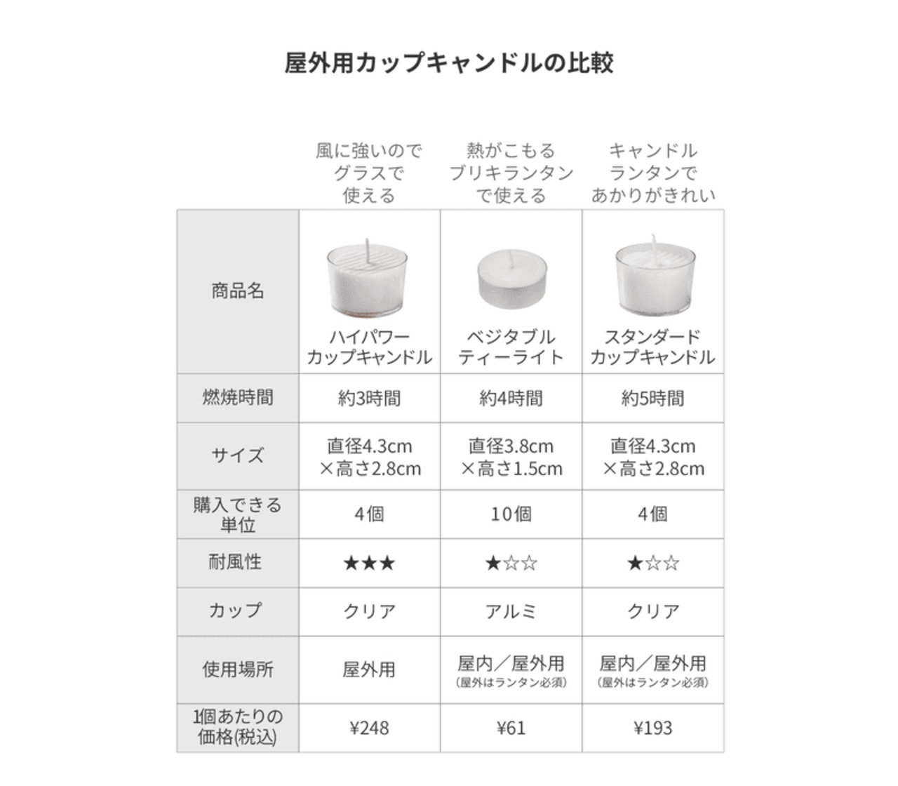 しかし、屋外でカップキャンドルを使う際、これまでは防風機能のあるランタンなどの特別なキャンドルホルダーしか選べませんでした。