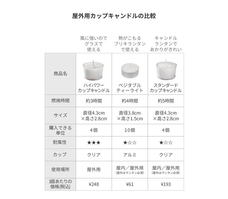 そこで屋外で使えるように開発されたのが、ハイパワーカップキャンドル。