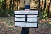 今回は、キャンパーでもありバッグデザイナーとして活動する「FIRE HOSE PRODUCTS」と共同開発。引き取った消防ホースを洗浄・乾燥させたうえで、デザイナー本人が手作業で裁断・縫製し、一つひとつ手作りで製作しています。