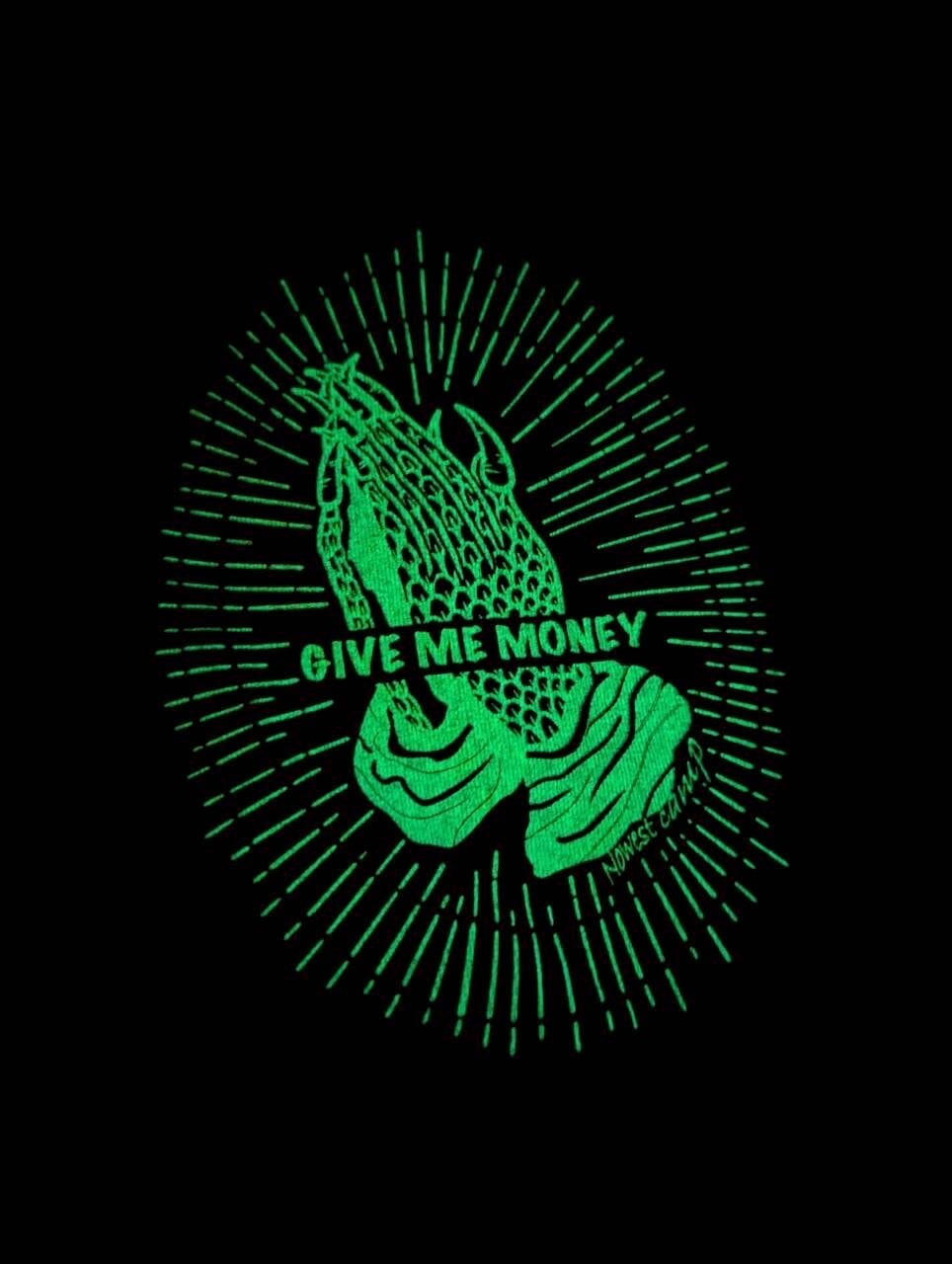 ホワイトでプリントした上にさらに蓄光インクをプリントしております。