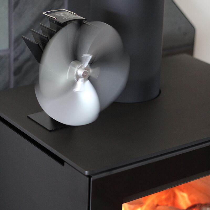ストーブから出る暖かい空気を4枚の羽根で室内に循環させるため、暖房効率を格段に向上させます。