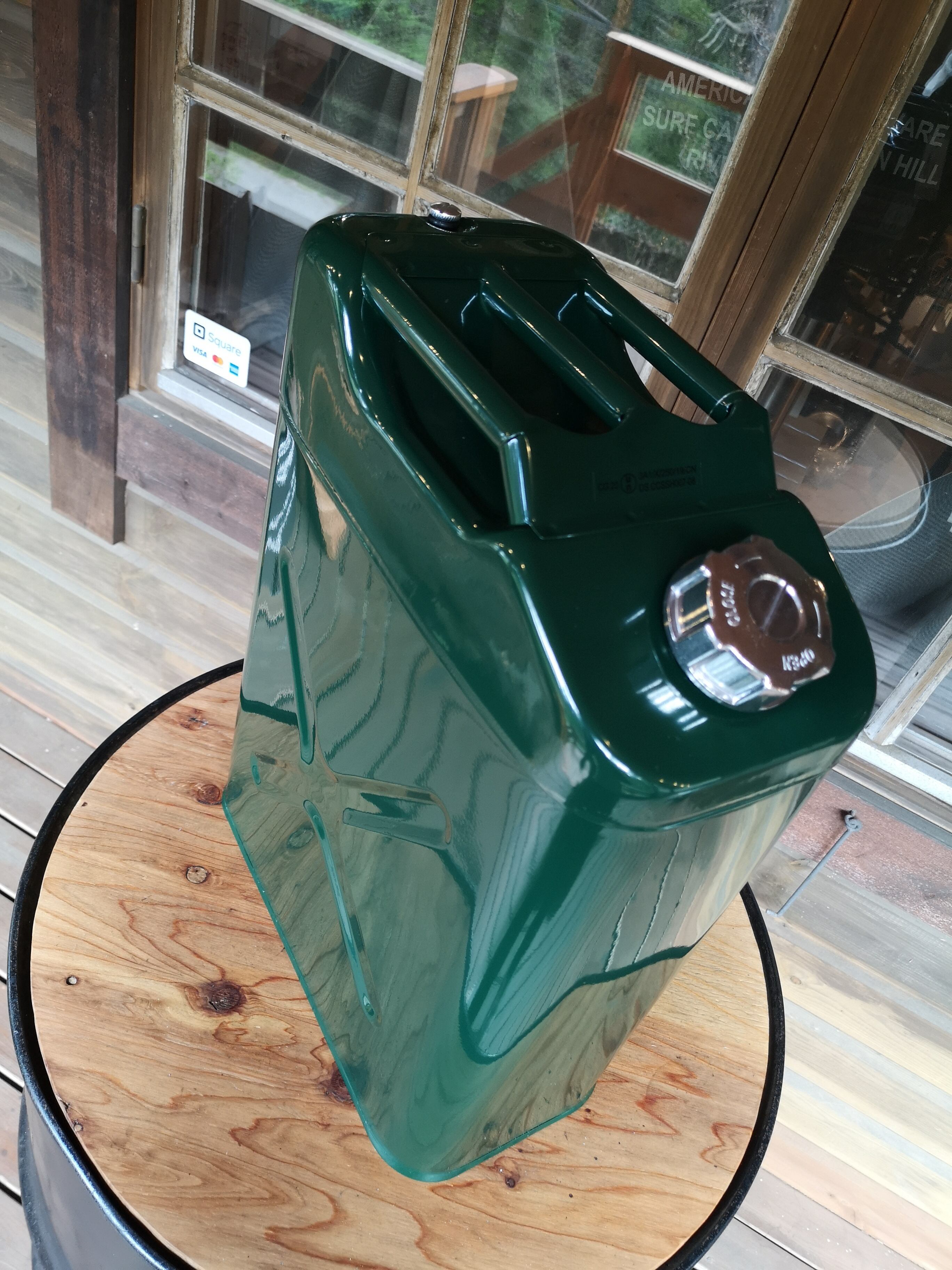 レギュラーガソリン、ハイオクガソリン、ホワイトガソリン対応のタテ型携行缶。