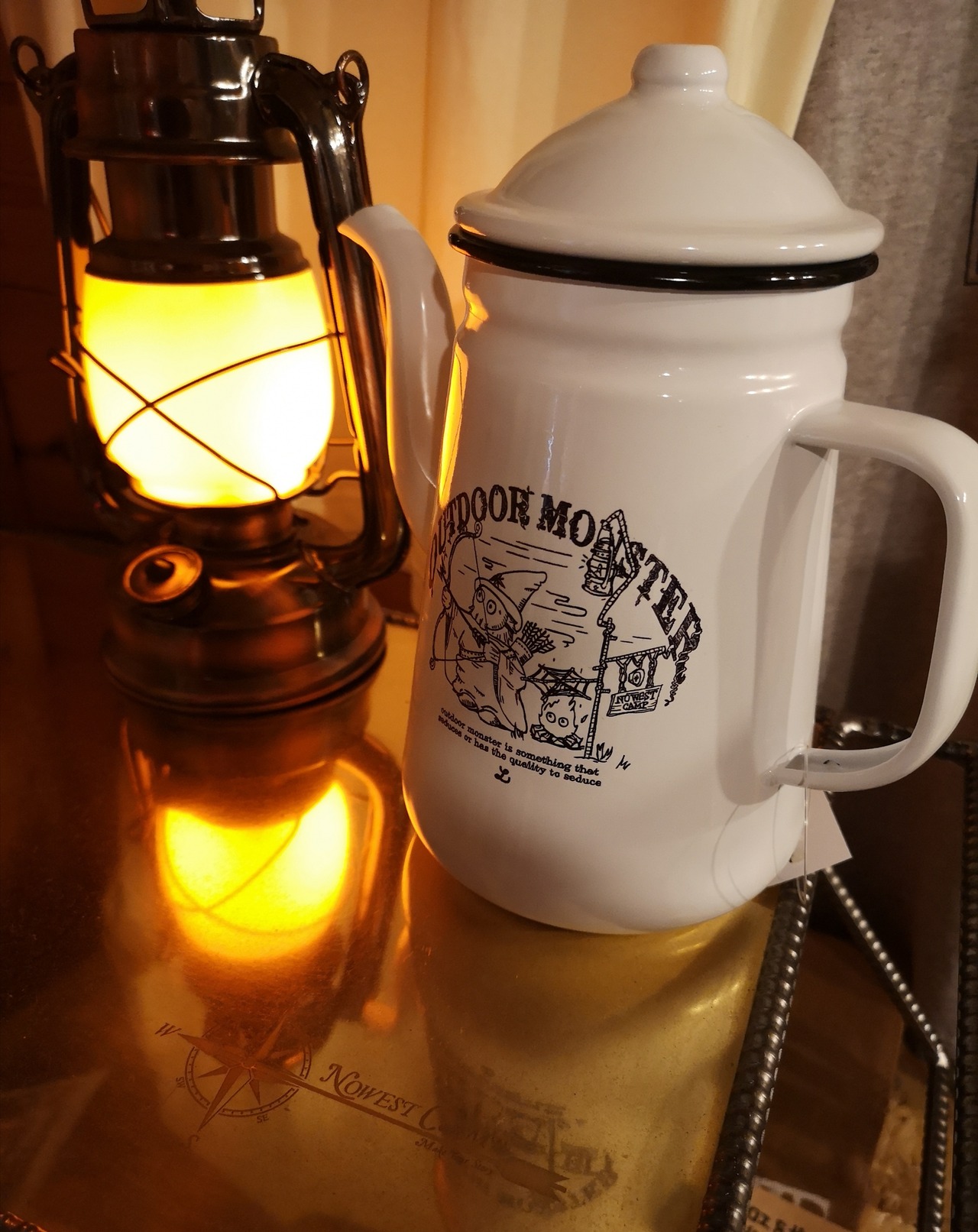 NOWEST CAMP限定のアウトドアモンスター《West-Hunter》が居座る(プリント)ホーローポッド。
