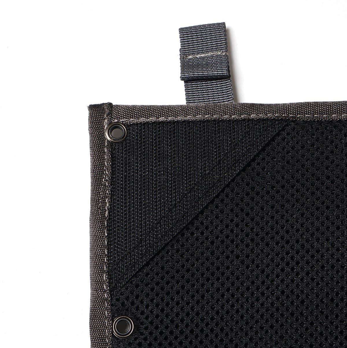 又、プレートを丸めて付属のストレッチコードとストッパーパーツを6か所のハトメに靴紐のように通して縛り上げると筒状の物に巻き付けてご使用いただけます。(付属する幅広のベルクロでジョイントする事も可能です。)