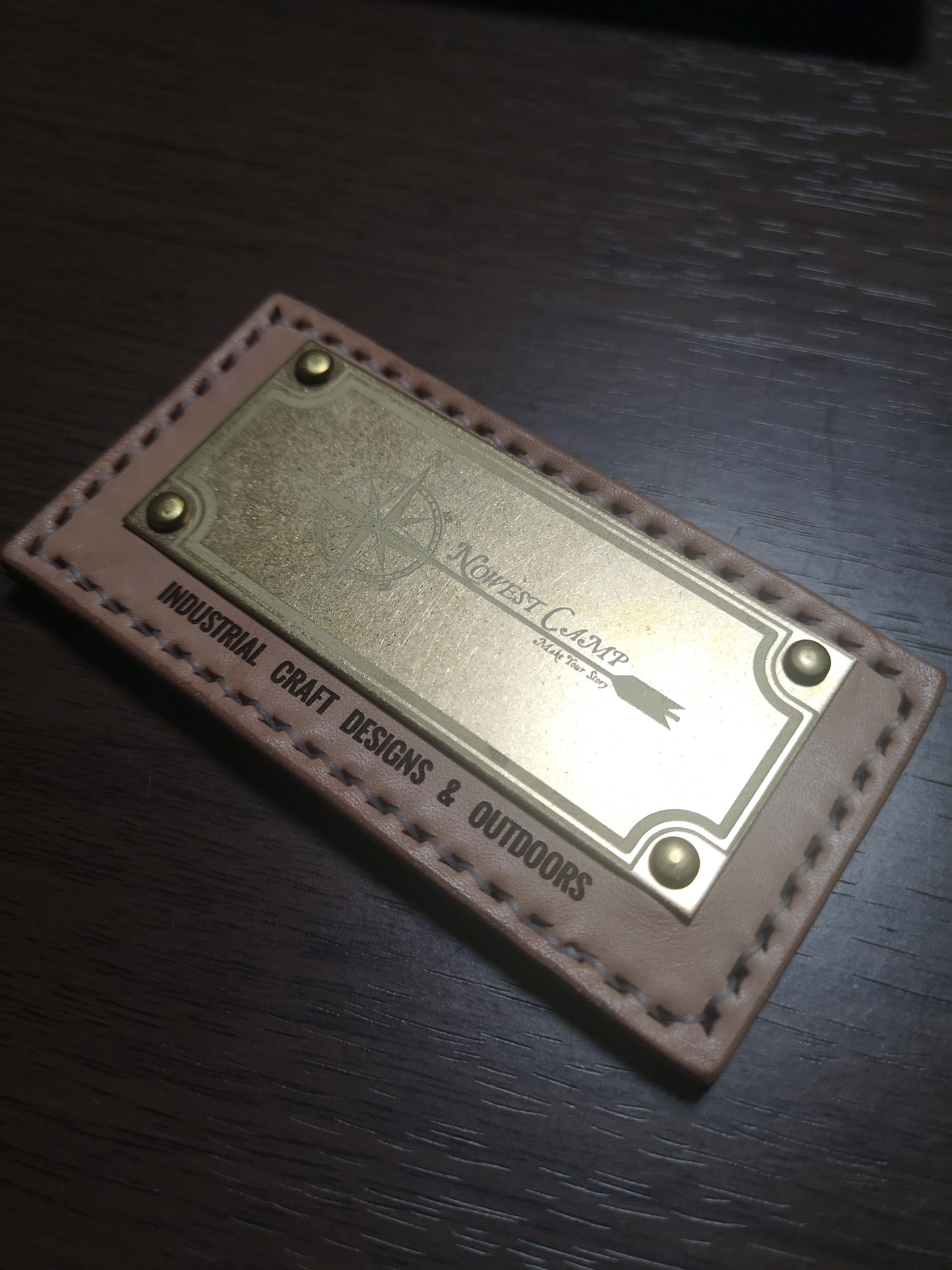 国内最高峰とも言われるヌメ革「栃木レザー」をベース材に使用し、NOWEST CAMPメインロゴをレーザー刻印した真鍮プレートをリベット止めしたオリジナルワッペン。
