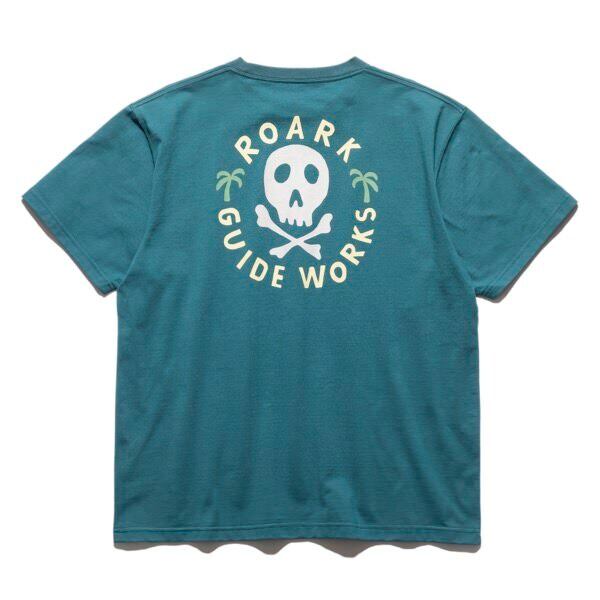 ドクロマークが目を引く「ROARK GUIDE WORKS」を前後にプリント。さらりとしたドライな質感かつ柔らかな肌触りで快適な着心地のFine Tech Dry Tシャツ。