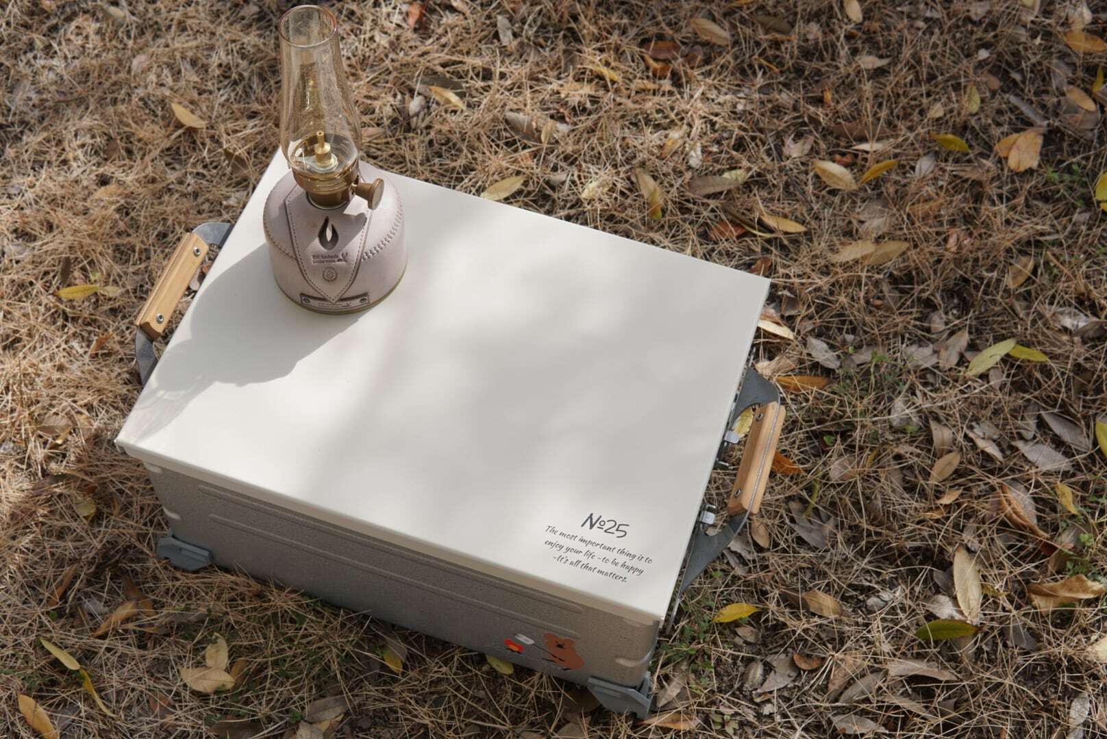 シェルフコンテナを開いた状態でもご使用頂けます。色は柔らかいクリーム色で塗装しました。