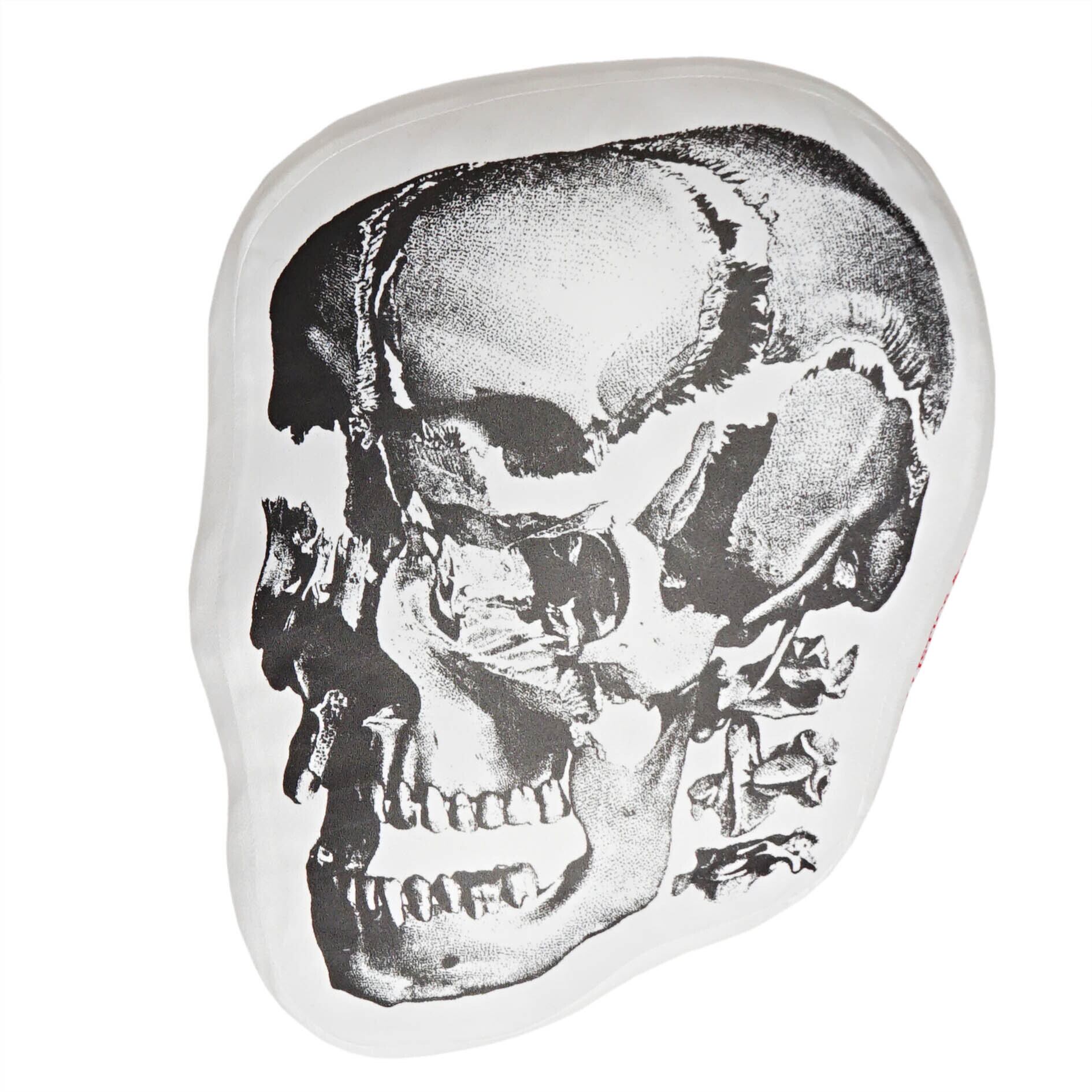 両面に左右を向いたスカルがプリントされ、マチ部分に文字がプリントされています。