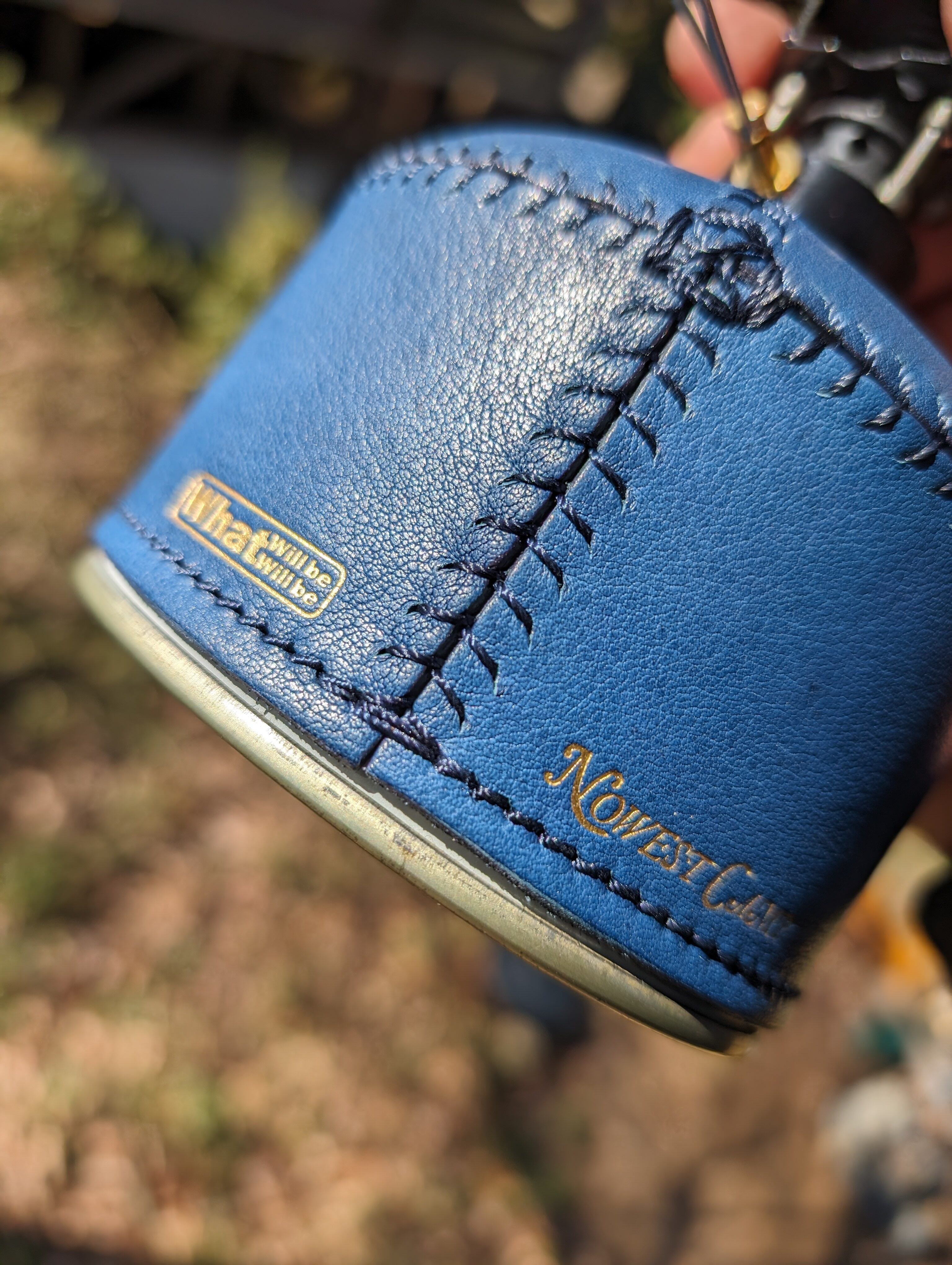 レザークラフトの匠、what will be will beさんに別注させていただいたNOWEST CAMP限定ディープインディゴブルーシリーズのロゴ金箔押しバージョンです。